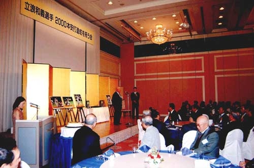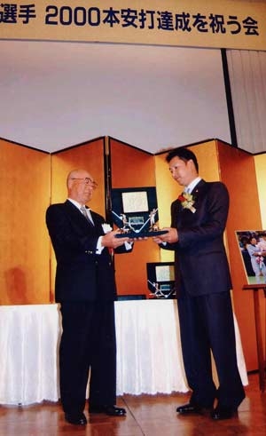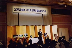 目標であるだけでなく、尊敬に価する選手です」と、喜びいっぱいにあいさつ。渡辺会長からの祝電も届き、立浪選手は「みなさんのおかげで2000本安打を達成できました。
