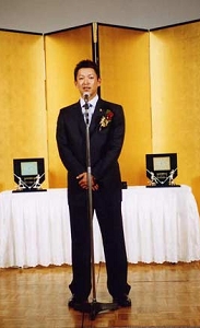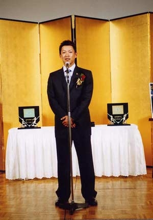 ボーイズ時代に、私のいた西成ハンターズが立浪選手のファインプレーで負けたのをまだ覚えています。オフに後輩の指導に当たるのもすばらしいことです。この記録を通過点として、更に大きな歴史をつくって下さい」と祝辞を述べた。