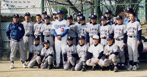 78年に少年野球チーム「ナニワボーイズ」を創設し、 現在の日本少年野球連盟「ボーイズリーグ」の基盤を作る。
